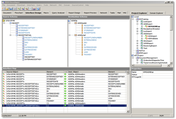 IDX garantiza la interoperabilidad entre sistemas a través de métodos de interfaz populares, como transferencias de archivos simples e integración de base de datos a base de datos, mensajería abierta y estándares de datos líderes, incluidos X12, EDIFACT y XML. IDX Developer también viene con adaptadores integrados para SAP R3, Infor WM (WM4000 y WM9) y adaptadores de transporte para FTP, servicios web y colas abiertas (MSMQ y MQSeries).