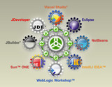 Visual Paradigm SDE** ofrece total integración con las principales herramientas de modelado, líderes del mercado: Visual Studio®, Eclipse, Borland JBuilder®, NetBeans/Sun™ ONE, IntelliJ IDEA™, Oracle JDeveloper, BEA WebLogic Workshop™.